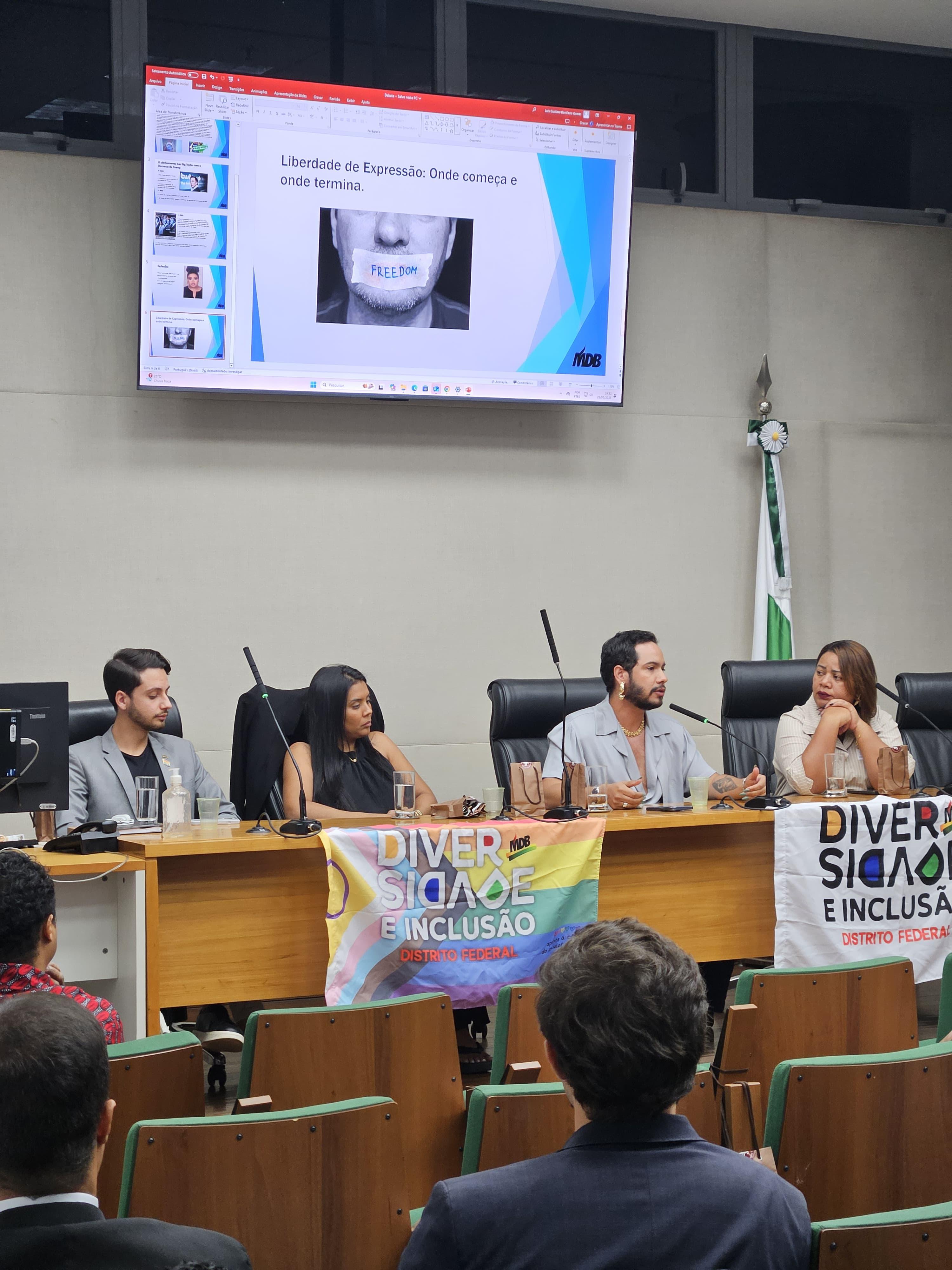 Na última quinta-feira, 22 de maio, a representação da Fundação Ulysses Guimarães no Distrito Federal, em parceria com o Núcleo Diversidade do DF, realizou o primeiro debate de 2025 na Câmara Legislativa da capital. O evento consolidou-se como um espaço de acolhimento, escuta ativa e fortalecimento da comunidade, reafirmando o compromisso da FUG com a promoção do diálogo e da cidadania.