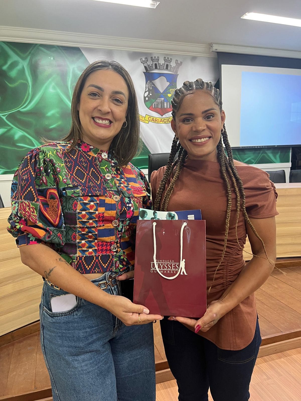 Além das visitas no campo educacional, a Fundação marcou presença na Câmara Municipal de Cariacica durante o evento promovido pelo Instituto Mulheres no Poder (IMP). Na ocasião, a equipe conversou com Salma Santos, responsável pela Coordenação de Articulação Política do Instituto, destacando os cursos e seminários ofertados pela FUG e entregando materiais institucionais.